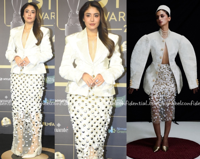Kritika was seen at an awards event wearing a modified look from Jeevan By Husain Rehar‘s Spring/Summer 2026 collection. Not that she looked bad in the modified version, but the original would’ve been a more interesting outfit to sport.