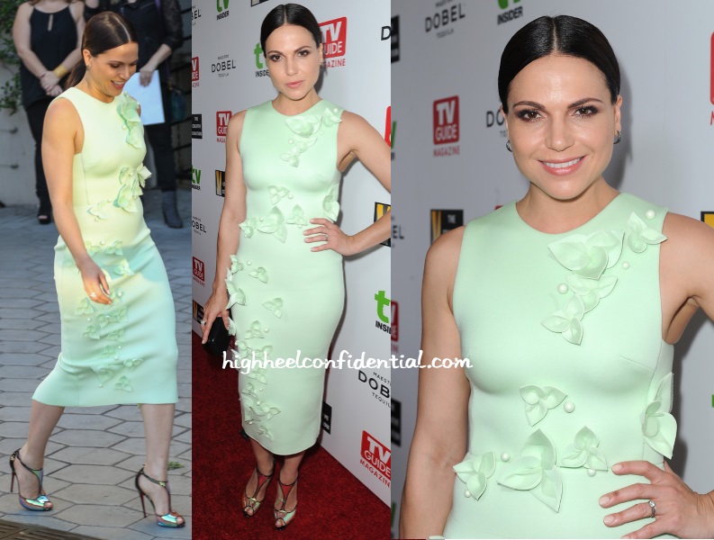 Lana Parrilla, who stars in ABC’s Once Upon A Time series, attended the Television Industry Advocacy Awards on Friday evening in Los Angeles wearing a Gauri & Nainika sheath. Pairing the pastel colored dress with edgy Louboutin t-strap sandals, she finished out the look with a middle-parted sleek ponytail and a black clutch.