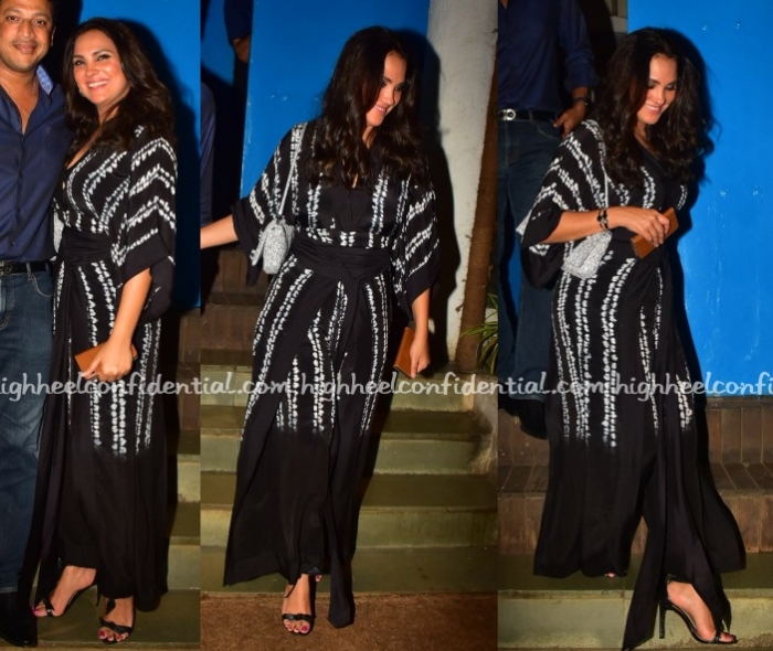 Lara grabbed dinner with her husband on Wednesday evening and was spotted wearing a Nupur Kanoi jumpsuit. She looked nice.