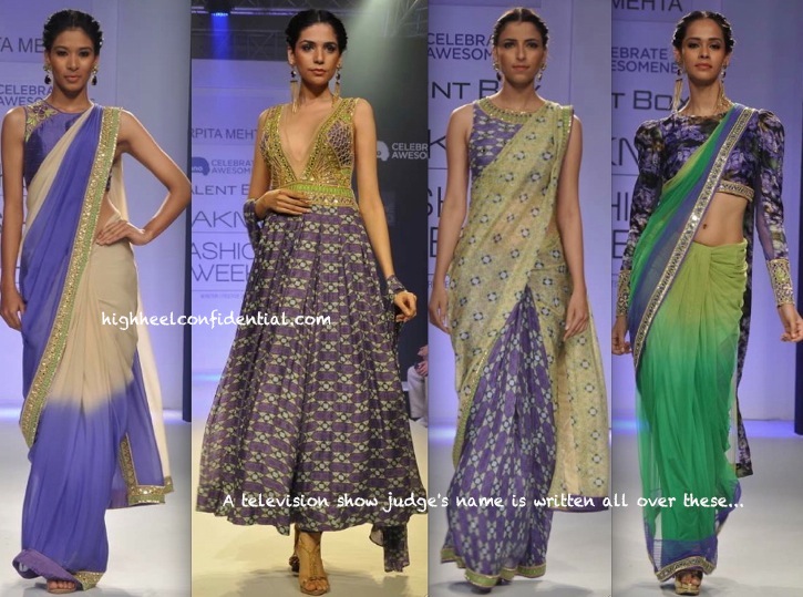 I really don’t see how my comment was offensive. Given how often she’s worn Arpita Mehta, it’s a natural conclusion that she’d snap up these saris too. I didn’t mean to imply anything different. If it’s condescension you read in to my tone… Well, now you know! 🙂