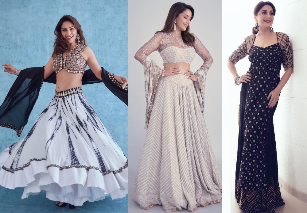 Madhuri has been keeping busy taping for Dance Deewane sporting mostly lehengas. Have a favorite? Mine was the Amit Aggarwal.
