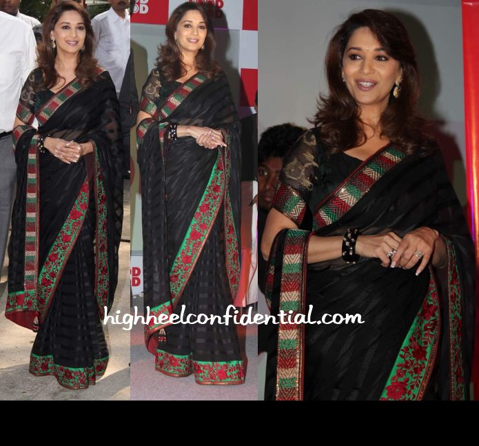 In what seemed a lot like a Manish Malhotra sari, Madhuri launched India’s first Hindi 24×7 food and lifestyle channel today in Mumbai.