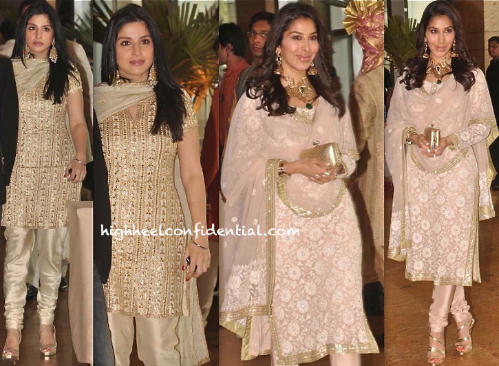 It was Abu Sandeep for Sophie and a Reena Marwa for Maheep at the wedding. Though Maheep did look nice, wish her kurta was a bit longer and the churidaar more fitted.