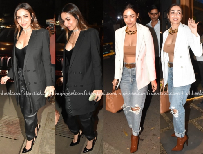 At back to back dinner outings, Malaika was spotted wearing blazers albeit quite diffrently. Between the black and white, have a preference? I wasn’t a fan of the extra long blazer + jogger pants + stiletto heels combo. Much preferred her in the white.
