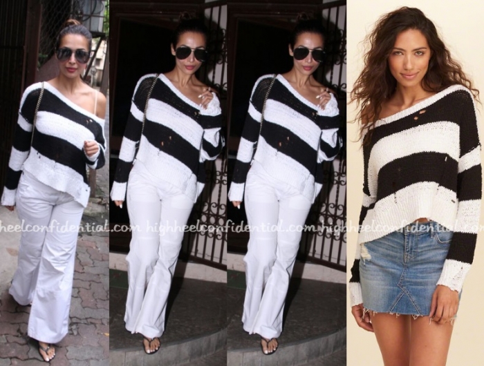 While out and about on Monday, Malaika was spotted doing black and white in a Hollister sweater and white pants. Consider I am a sucker for black and white, I really liked this casual look on her.