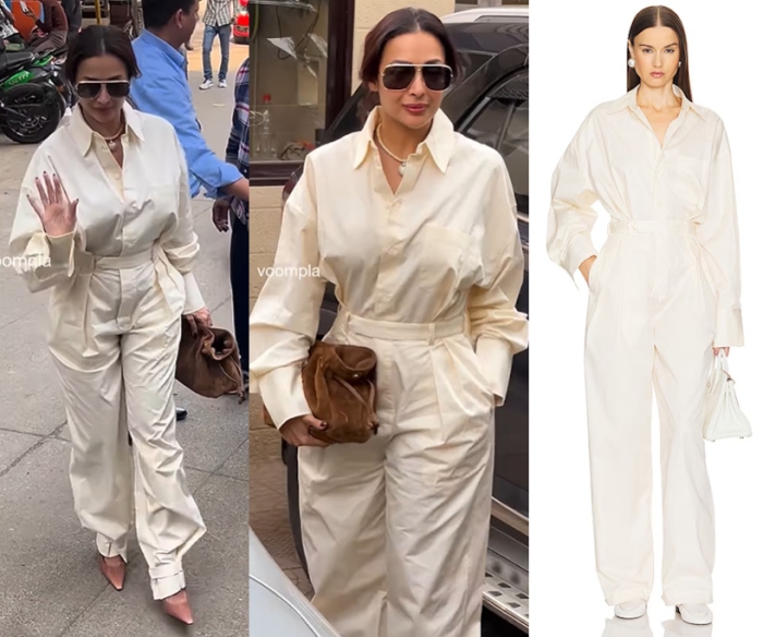 Malaika spent Christmas day lunch with her family and was seen wearing a cream jumpsuit form Helsa paired with a suede Loewe bag and pointed boots. I think I like this jumpsuit with the hem unbuttoned than buttoned. But, then the jumpsuit ain’t my cup of tea in the first place. Too much material and too stuffy.