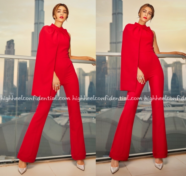 Coincidentally, Kriti was seen wearing a red version of the same jumpsuit while promoting her movie in Dubai. Catch pictures of her inside. She looked great as well but have to point out that the pics we have are from staged photoshoots.