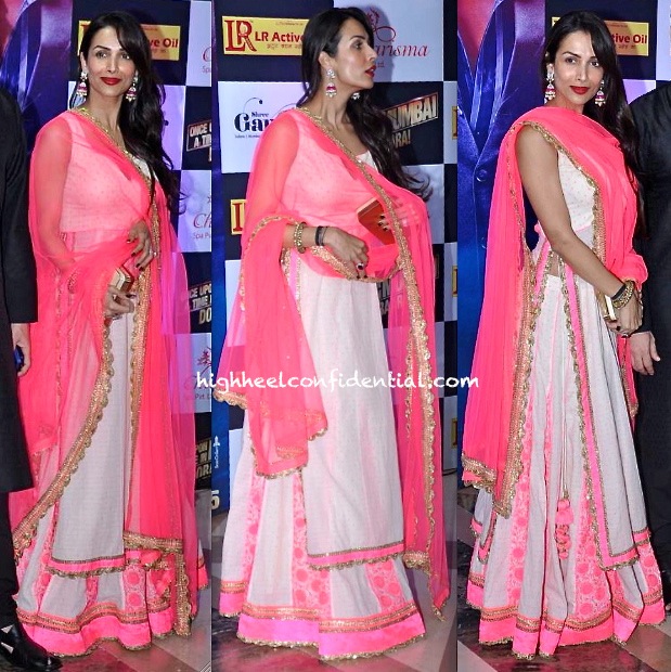 I usually think malaika nails the glam doll look but here she just ends up looking ghastly. That make up is totally clashing with the outfit which otherwise wudnt have looked all that bad.