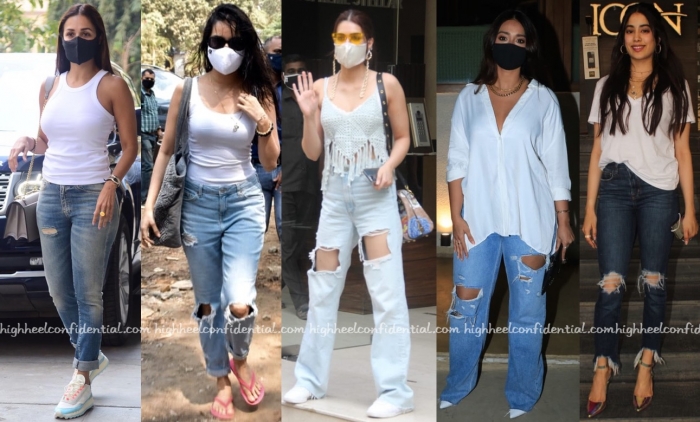 Teaming their distressed denims with white tops, these ladies stepped out in Mumbai recently. While some dressed it up with their choice of shoes and/or bags, other went the super casual route. Who nailed the look best?