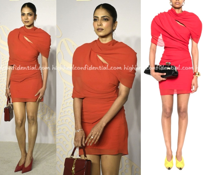 Malavika did shades of red in a Jacquemus dress paired with a Gucci padlock top handle bag and red shoes. Am a bit on the fence about the bag choice, the size and shape didn’t seem to work with the dress but she wore the dress well.