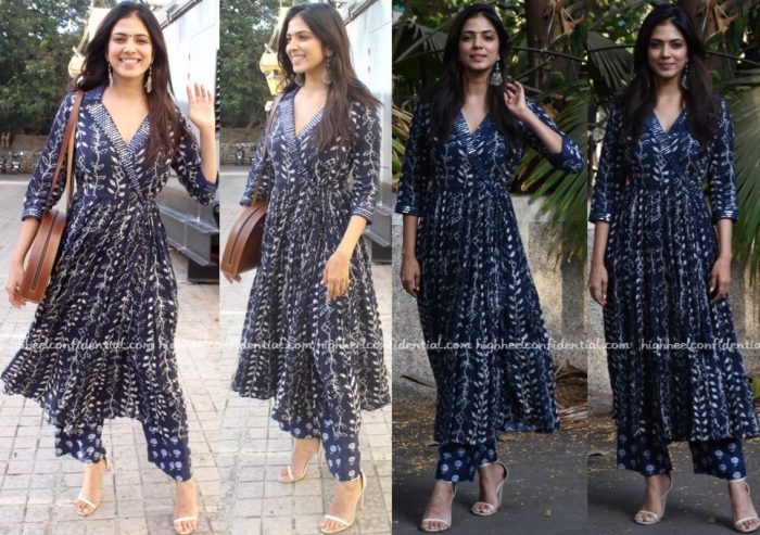 While out and about in Mumbai, Malavika was photographed in a printed Punit Balana suit, one that she teamed with silver earrings, ankle-strap sandals and a tan bag. Personally, not a fan of that bag. But that hardly mattered given how lovely Ms. Mohanan looked in her suit; we like.