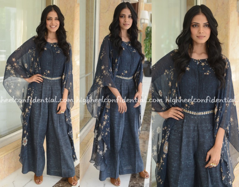 Promotions for Beyond The Clouds in Delhi saw Malavika in a Tarun Tahiliani kaftan styled jumpsuit paired with tan sandals. I am always wary of pants that have a crisp front fold but she wore it well. Agree?