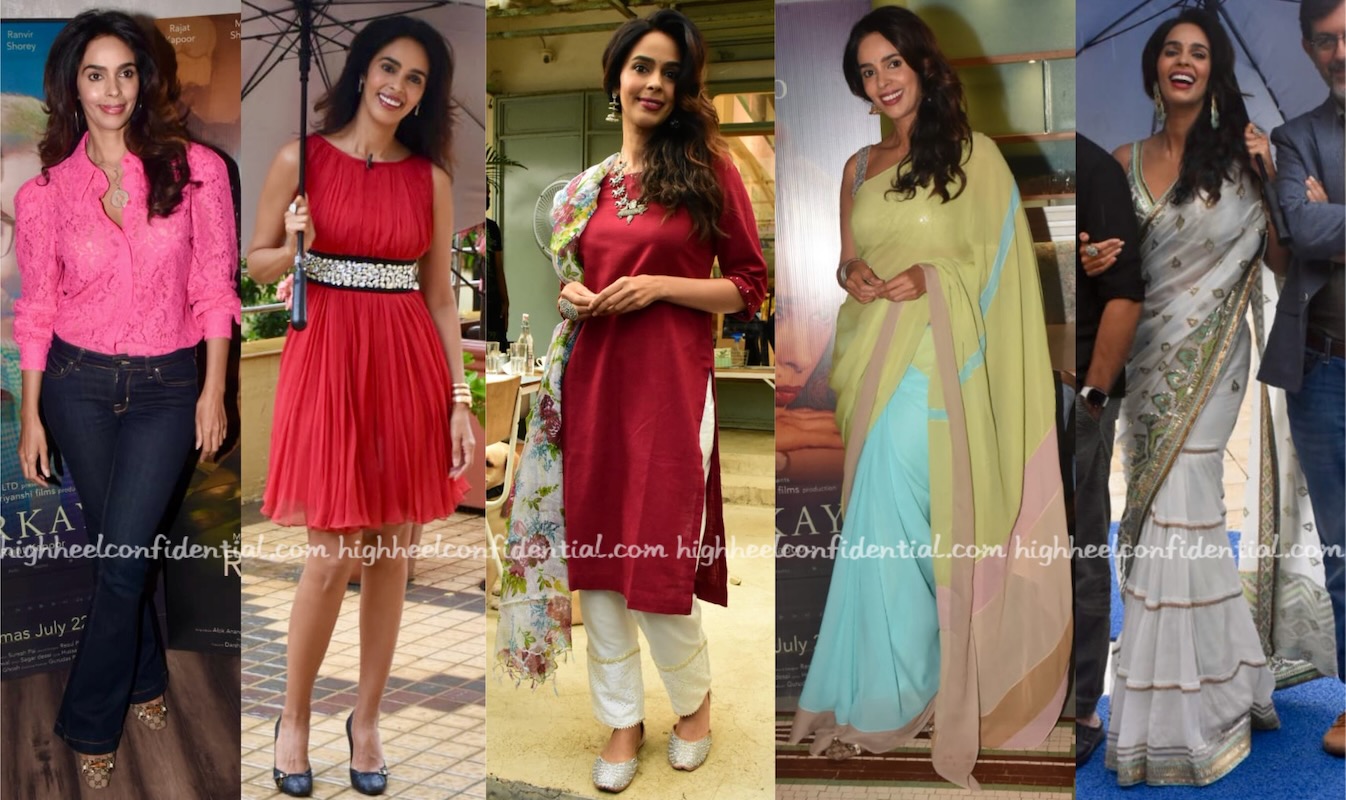 Mallika has been busy promoting her latest movie in Mumbai recently… And while she looked nice in all of her looks, the sighting in the red dress was my least favorite. And the dress itself is to blame- with its rhinestone stash, it just looked so dated!