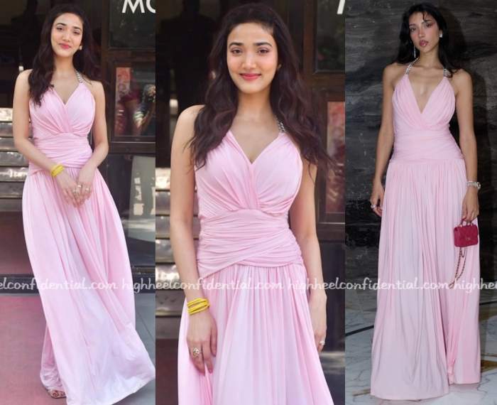 Medha attended promotions for her upcoming movie wearing a pink halter maxi from Self-Cntrd paired with yellow bead bracelets. The outing was simple and non-fussy. I didn’t mind.