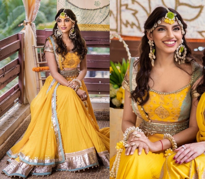 Love the yellow outfit..subtle summery colors, no over designing..that lehenga skirt fabric looks super comfy and earthy..