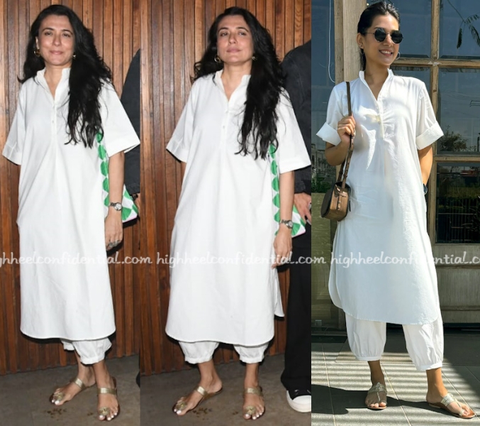 Wearing what looked like was a co-ord set from Surma, Mini attended a party at Zoya’s on Thursday evening pairing it with gold sandals and a big tote. An outfit I would totally wear in a heartbeat. You like?