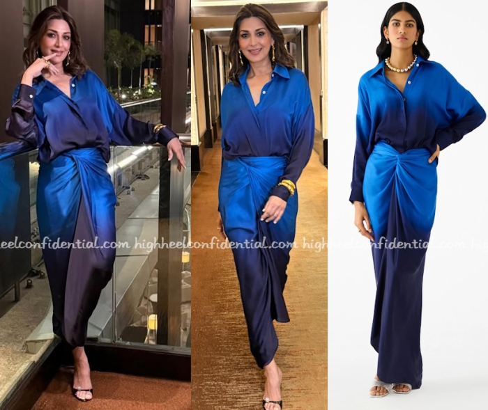 Mrunal was seen recently wearing a Studio Rigu jacket, pants and shirt set with white slides. I think I preferred the plain top that the model wore vs the drape one that Mrunal sported. Unless, she and her stylist tried some of those social media hacks to wear shirts differently.