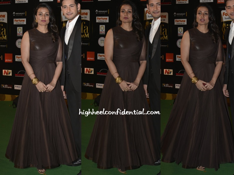 Namrata accompanied Mahesh Babu on day two of IIFA Utsavam wearing a Shantanu and Nikhil gown to the event.