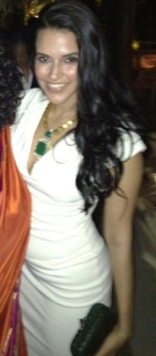 Oprah is visiting India and her first stop was Mumbai. In honor of her visit, Adi and Parmeshwar Godrej held a bash which was attended by the film fraternity. We don’t quite have full-length of everyone yet but here is your look at Ms. Dhupia wearing a white Victoria Beckham dress paired with a necklace by Anmol jewellery.