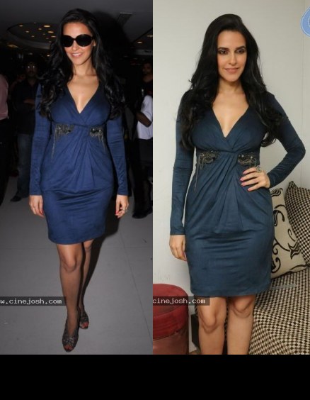 Ms. Dhupia was in Hyderabad today to promote her upcoming movie wearing what we think is a full-sleeve Spendthrift dress. The fit of this dress was just terrible. Quite a misstep from Neha.