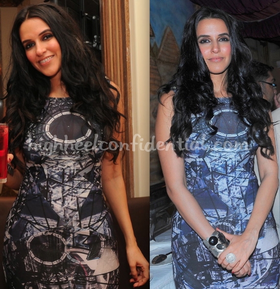 It was a Falguni and Shane dress for Neha at a lounge opening in Goa. Love the graphic print dress on her!