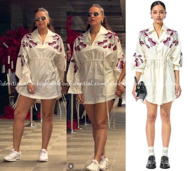 Neha was spotted at lunch on Tuesday keeping it casual in a shirt dress from Kanika Goyal paired with sneakers and black shorts. Like how she wore it?