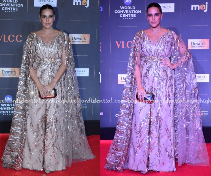 Neha who celebrated her 20th year since being crowned a Miss India attended the pageant wearing a sequin cape gown by Saeed Malas. She looked good but I wish the gown had a back slit instead of that front one. That slit made the gown feel very stiff with the way it fell.
