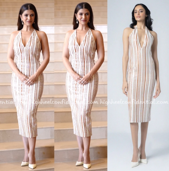 Promotions of her series saw Ms. Kaur in a dress from Sameer Madan paired with white pumps and while this was a better look than the previous one, it wasn’t very striking. It was simple and clean but to me, very boring.