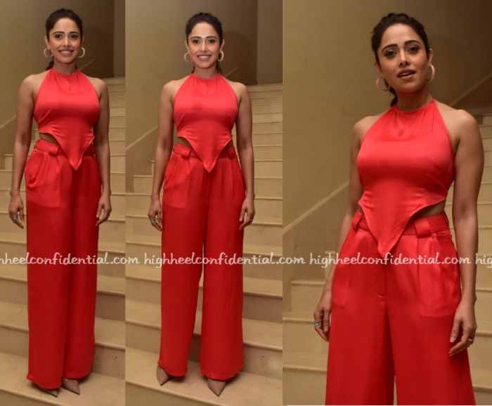 Nushrat attended promotions for her movie Monday wearing a top and pants from Esgee. Except, between the distracting pocket silhouette and the poorly stitched scarf top, one really couldn’t like the separates themselves let alone the look as a whole.