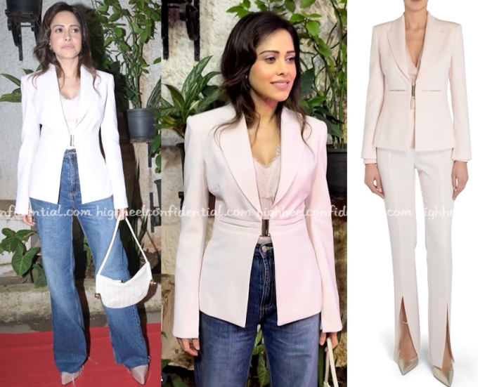 In Pinko By Payal August 6, 2025 The Daily Etcetera 2 Nushrat attended a screening on Wednesday evening wearing an Pinko jacket with a lace crop top and denims. A Bottega Veneta bag and platform grey pumps finished out her look. She looked alrite. Nushrat Bharucha Photo Credit: Viral Bhayani Tags: nushrat bharucha, pinko, Salakaar Screening Like it? Share it! Previous Article Sari Style Next Article Out And About