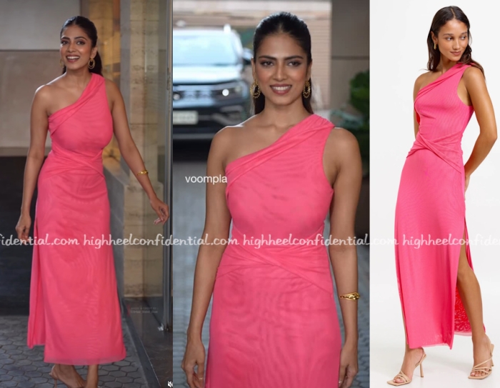 Promotions for her movie saw Malavika in a pink dress from Studio Lexi paired with gold mules and gold jewellery. This was simple but nice. Like what you see?