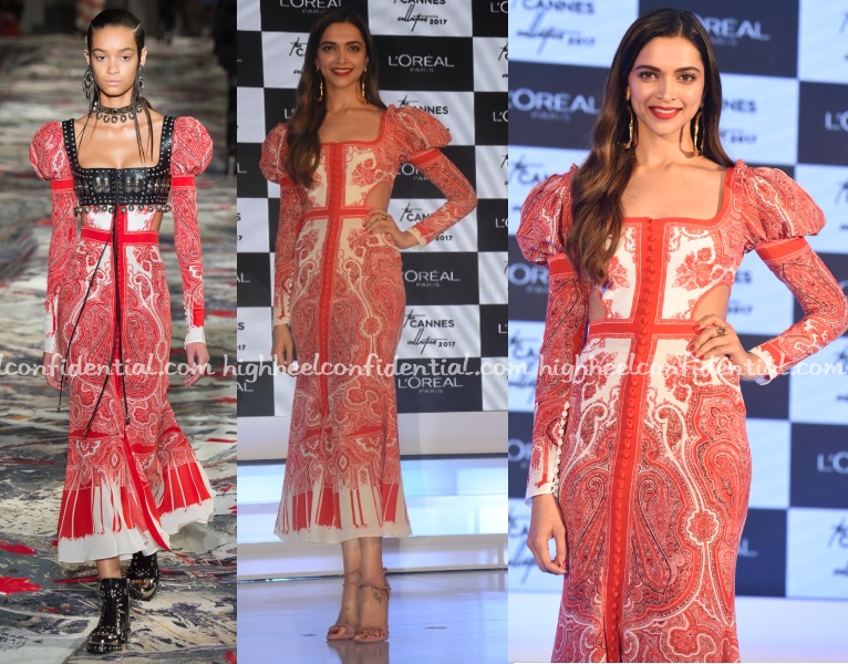 Pairing a striped Shivan And Narresh crop-top with Zara pants, she rounded out the look with a pair of matching neutral pumps while at one screening. Reversing the combination of brands, she paired an off-shoulder Zara top with a pair of printed Shivan and Narresh pants while at another screening. An Isharya cuff and pair of Louboutins were her accessories of choice for the evening. Both times, the actor rounded out the look with a ponytail.