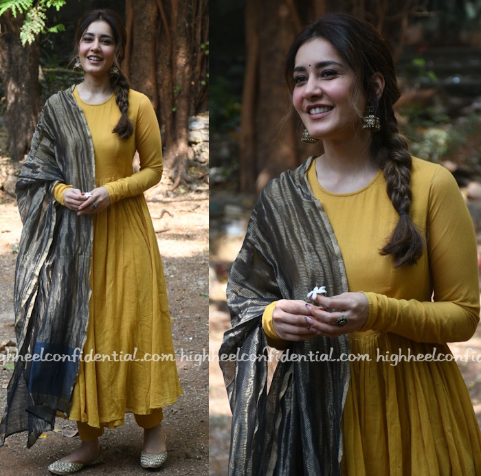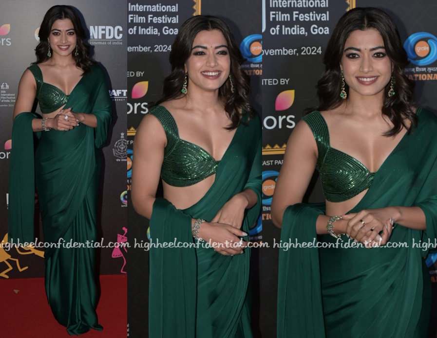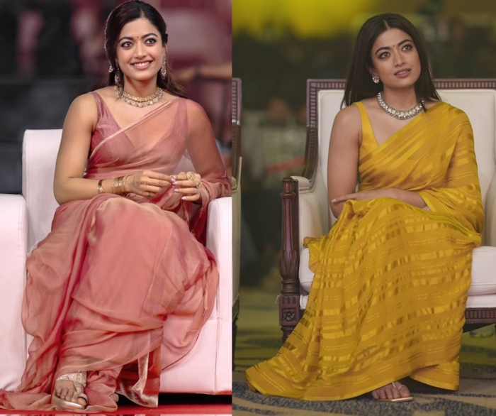 Rashmika has been busy promoting her upcoming movie keeping it simple in solid colored saris. Have a favorite?
