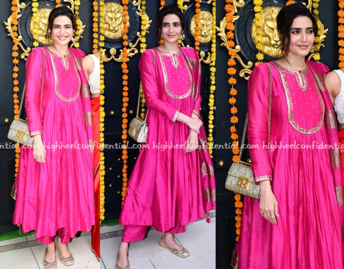 At the trailer launch of her upcoming movie, Tripti was seen in a retro print sari and matching scarf and going by the bangles in her hand, this was more of an in-character look so can’t really comment much on it. But, she did appear for some promotions earlier this week wearing a Tarun Tahiliani sari to one and an Iqbal Hussain lehenga to the other. Even though the sari was pooling a bit, it was the better outing of the two. The lehenga with that belt and the dupatta wrapped around the neck which just didn’t work here.