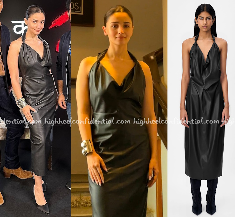 Wearing Ura again was Ms. Bhatt this time picking a vegan leather dress from the label paired with a cuff from Inca and silk pumps. While I like that she went for a sleek minimalist look, can’t say I loved the dress here. It was not good.