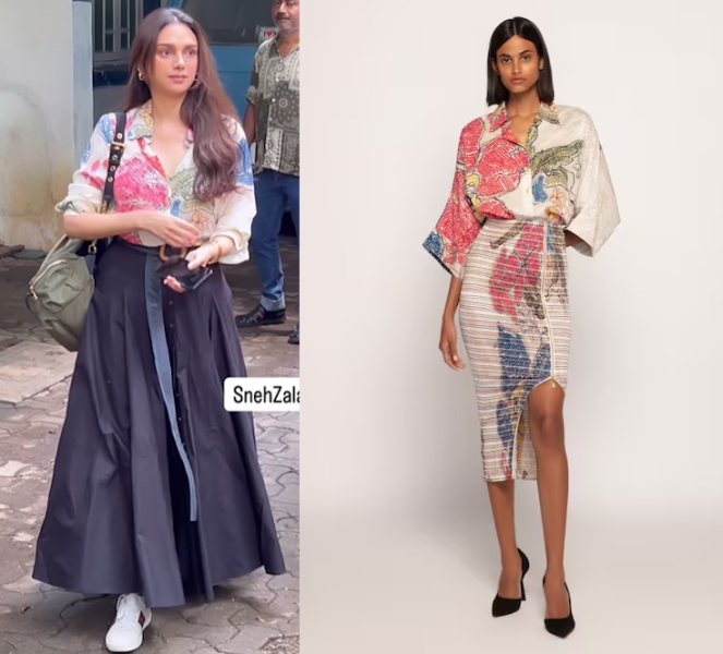 Ananya was spotted at a shoot wearing a gloved color blocked Alex Perry mini dress with ankle-strap sandals. While styled well, the dress felt a tad snug on Ananya. Like the dress itself?