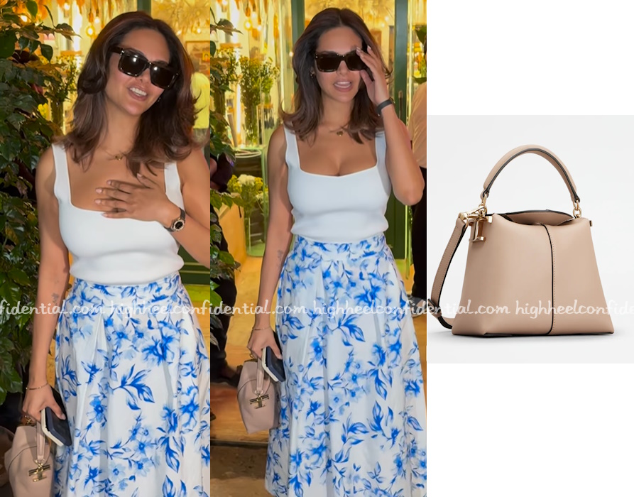 Esha was spotted out keeping it casual in a white tank and blue printed Zara skirt but what caught my eye was her Tod’s T Case tote. Like the bag?