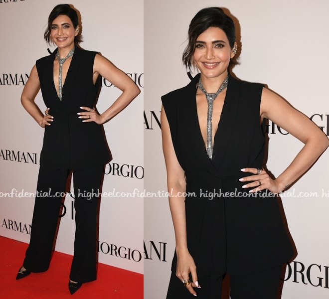 Shweta attended the trailer launch of her series on Thursday wearing a cutout artsy dress from Mini Sondhi. The eye-makeup and hairdo sure was interesting and worked with the dress but where she lost my love was at the boots. It was much too distracting and borderline comical.