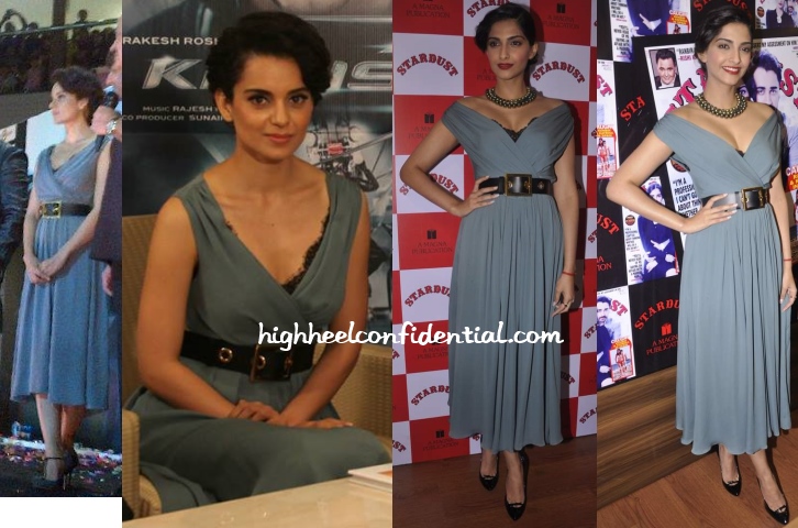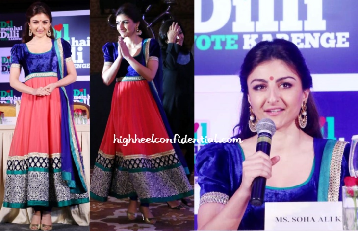 Wearing a look from Pankaj and Nidhi‘s latest Spring 2014 collection, Jacqueline attended Asin’s birthday bash.