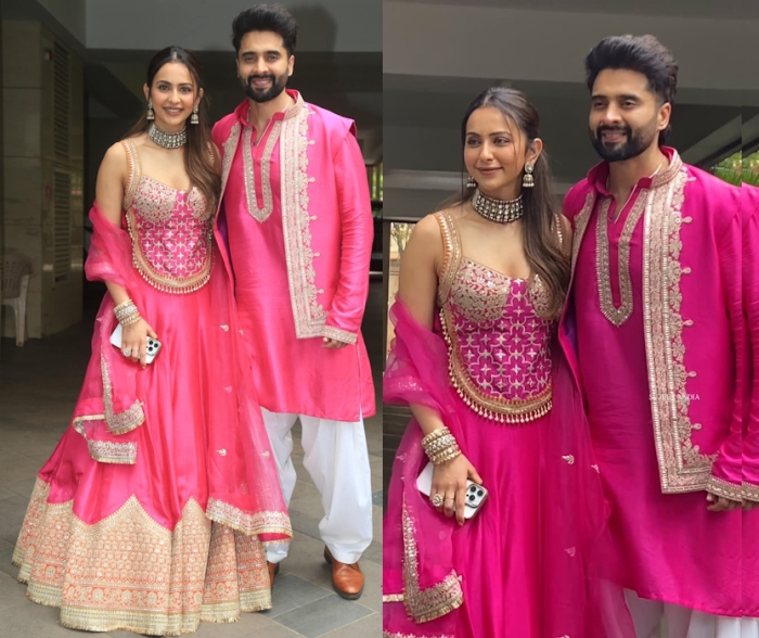 Rakul and Jackky hosted a puja at their home that was attended by close friends and for the festive day colo-coordinated in pink looks from Gopi Vaid. Like the lehenga on Rakul?