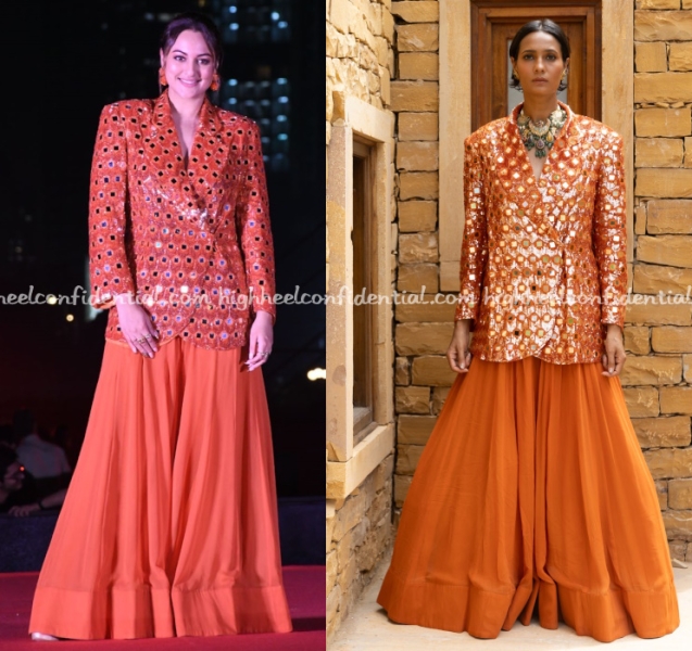At a promotional event for her movie, Kriti was seen in a dress from Sameer Madan. I liked the top part design but not the frock bottom.