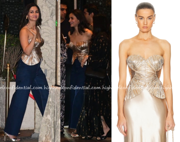 Shilpa attended a paryt on Friday evening wearing a signature Anamika Khanna crop top, dhoti skirt and cape set. I loved the emerald colors in the outfit and perhaps with her hair in a sleek updo or ponytail, this would’ve been a winner. As is, those heavy extensions were weighing the look down in a bad way.
