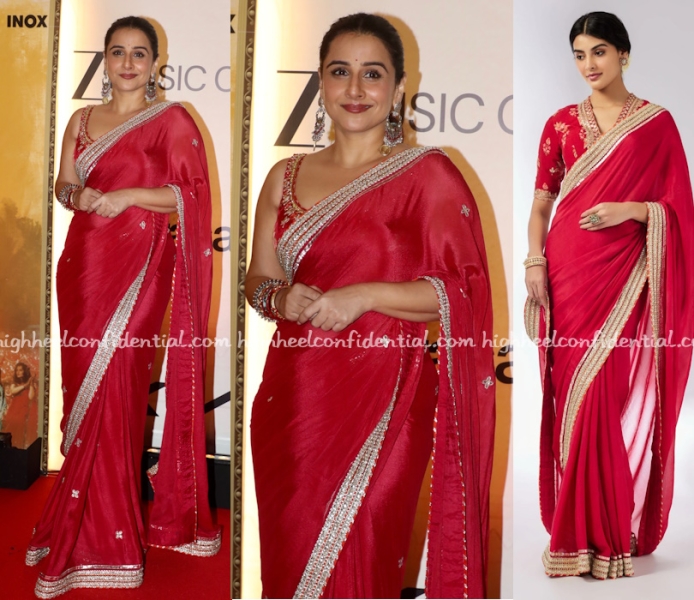 Vidya, who debuted with Parineeta, celebrated the 20th anniversary of the movie at a screening and was seen wearing a red sari from Gopi Vaid with long earrings and a stack of bangles. She looked lovely in it.