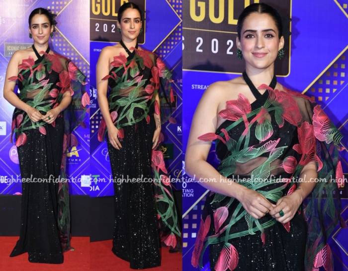 Wearing a Shriya Khanna sari, Sanya attended an awards event on Friday evening. She looked great!
