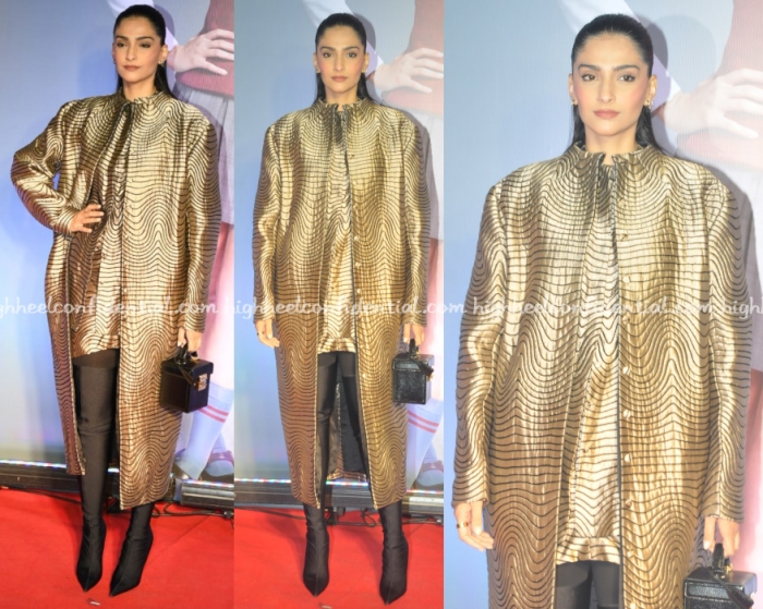 Huma was seen at the screening of a movie wearing a Gucci denim jacket with a Karl lagerfeld sling bag and boots. Waist up she sure looked great but am not a big fan of leggings worn as pants with tops tucked into them. Especially these leather leggings that had a sheen to them. What about you?