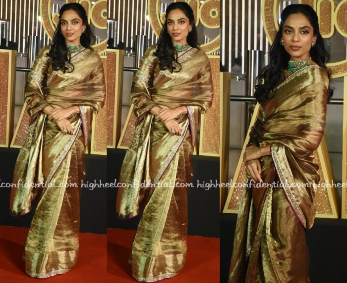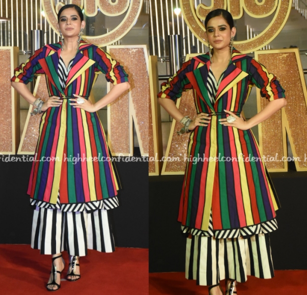 Ayesha was seen at the Mumbai Film Festival opening night wearing a jumpsuit from Rahul Mishra’s couture collection with chunky platform sandals. I like her spirit to wear this bodysuit but don’t think it works in real life.