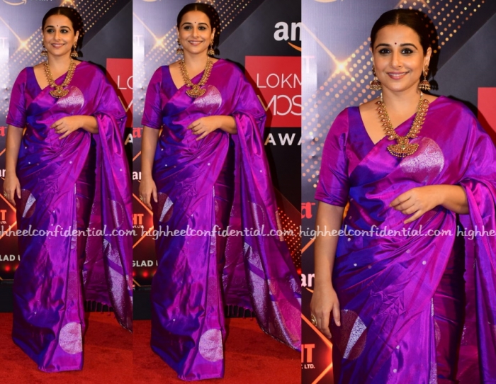 Wearing a purple silk sari with traditional gold jewellery, Vidya attended the Lokmat Most Stylish Awards. She looked oh-so-lovely! Wouldn’t change a thing.