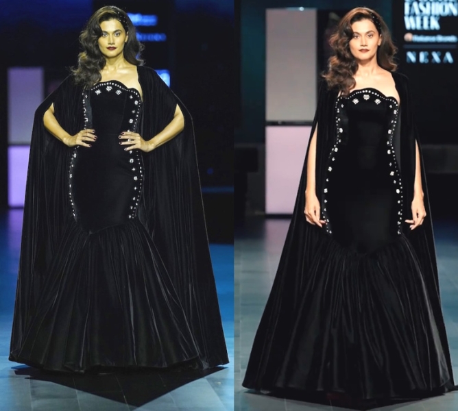 Palak attended the launch of a magazine on Sunday evening wearing a strapless gown from Gauri and Nainika, one that we also saw on this other celeb on the runway (see inside).