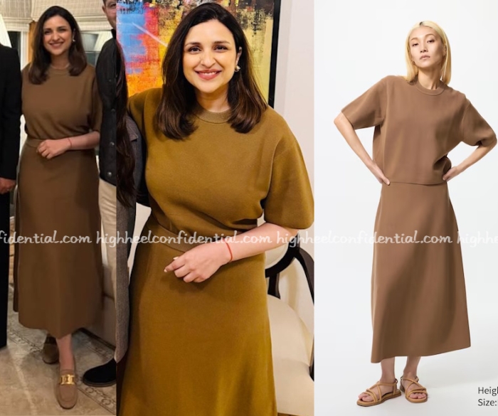 In Uniqlo By Payal December 21, 2025 The Daily Etcetera 0 New mum Parineeti shared pics of herself at a dinner at home and was seen wearing Uniqlo‘s brown top and skirt set and Tod’s loafers. Parineeti Chopra Photo Credit: Instagram Tags: dinner, Parineeti Chopra, uniqlo Like it? Share it! Previous Article In Gauri and Nainika Next Article In Zimmermann