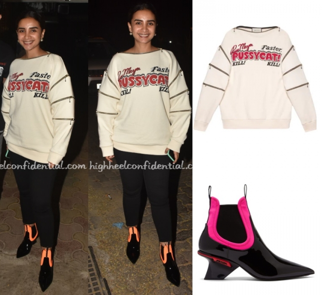 Patralekha grabbed dinner with family and was spotted wearing a Gucci sweatshirt with Prada ankle boots. Like the pairing?